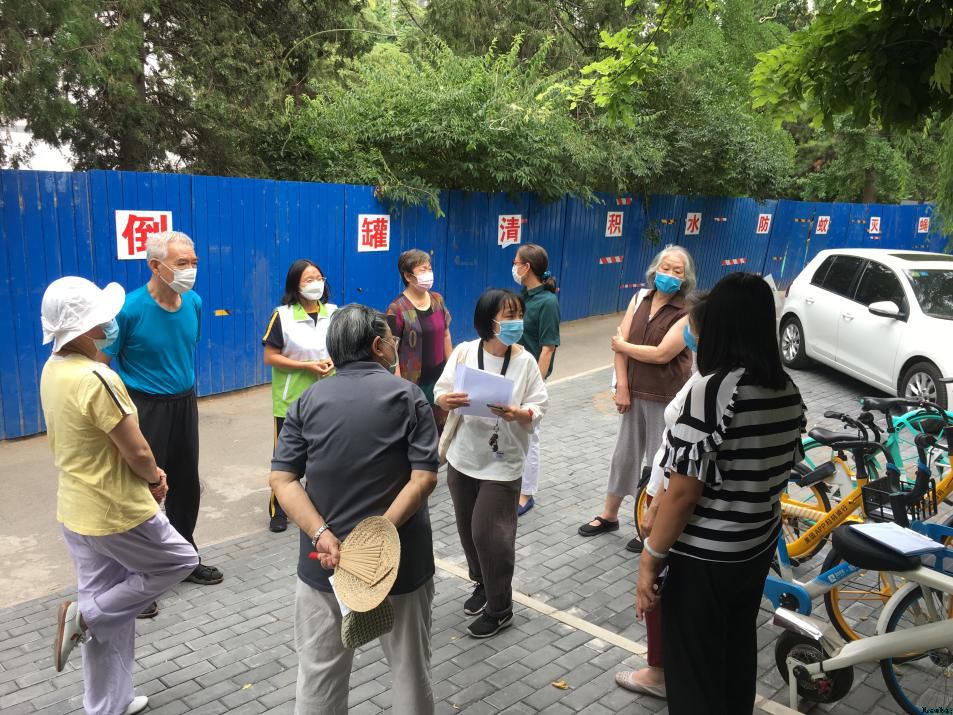 为宣传“小空间·大天地——安慧里一区8号楼单元化治理”项目,充分发挥党员、居民代表在社区治理中的先锋模范作用,顺势摸清居民需求,安慧里社区居委会联合立德社工事务所,于2020年6月28日下午3点在居委会门前召开了8号楼居民骨干讨论会。社区主任、包楼居干、立德社工、社区党员、居民代表等11人参加会议。