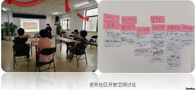 《学习促成长 实践促提升—安贞街道社区党委人才培养计划项目》设计是以微项目的方式开展具体服务,在实操的过程中辅以专项培育,助力社区党组织的功能发挥。 6月23-24日,在裕民路社区和安外社区活动室举办了两场不同主题的开放空间讨论会。活动现场,立德社工与试点社区的社区党委、居民支部成员共同研究了小微项目的主要内容。