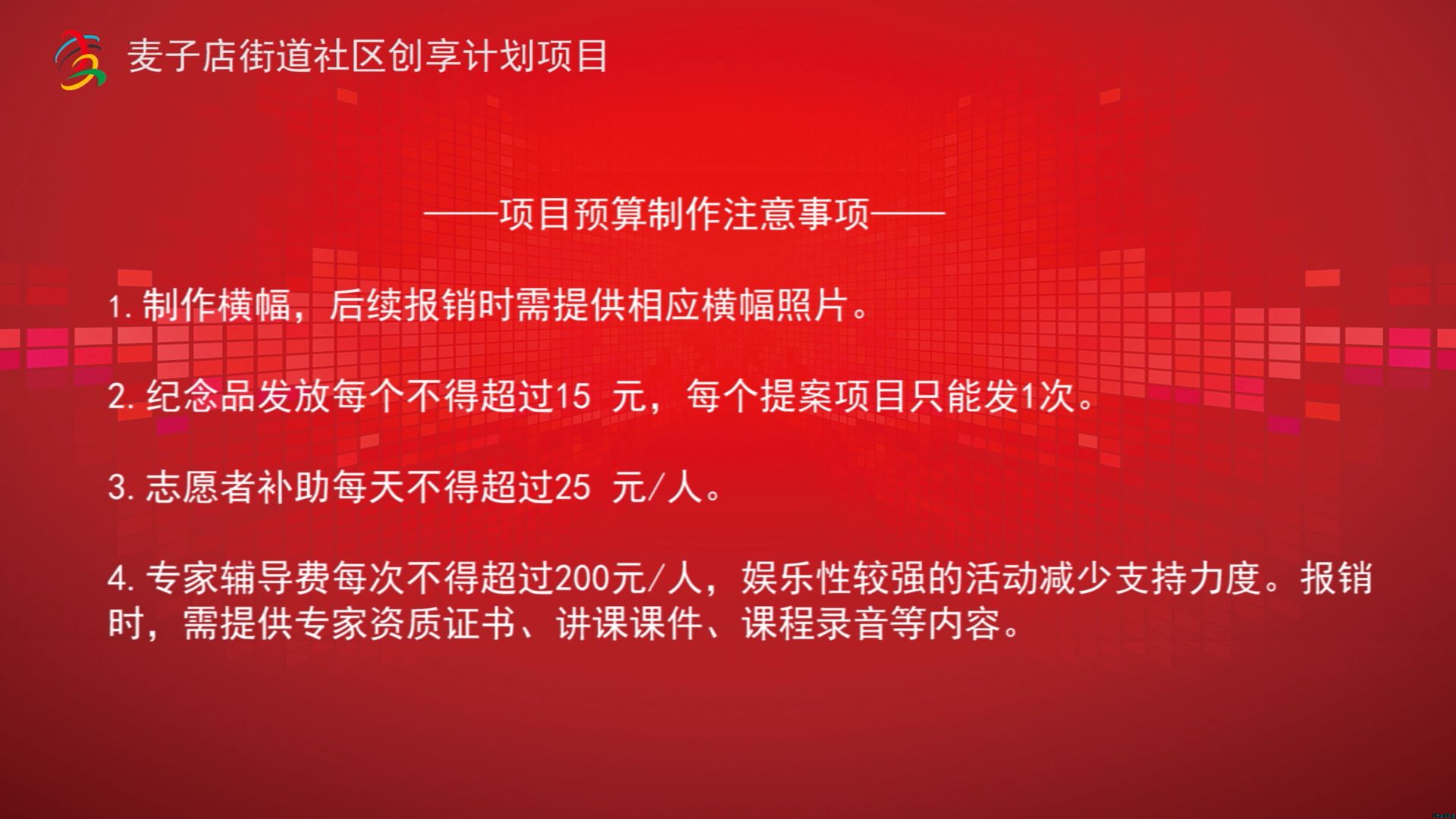 为减小疫情对麦子店街道社区创享计划项目的进度影响,积极响应少开会、开短会的疫情防控号召,在推出2020新版《创享计划项目申请书》的背景下,麦子店街道联合立德社工首次通过制作辅导视频加讲解的形式为居民进行提案云辅导,助力居民将所想转化为所写,将所写转化为所行。