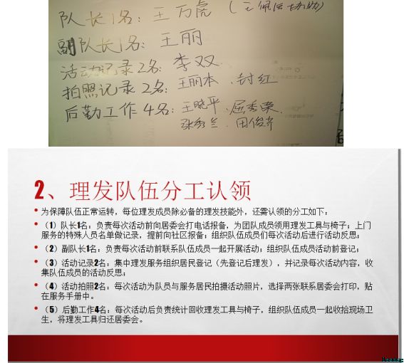 4、确定每月集中理发服务的时间,定为社区义务理发日;