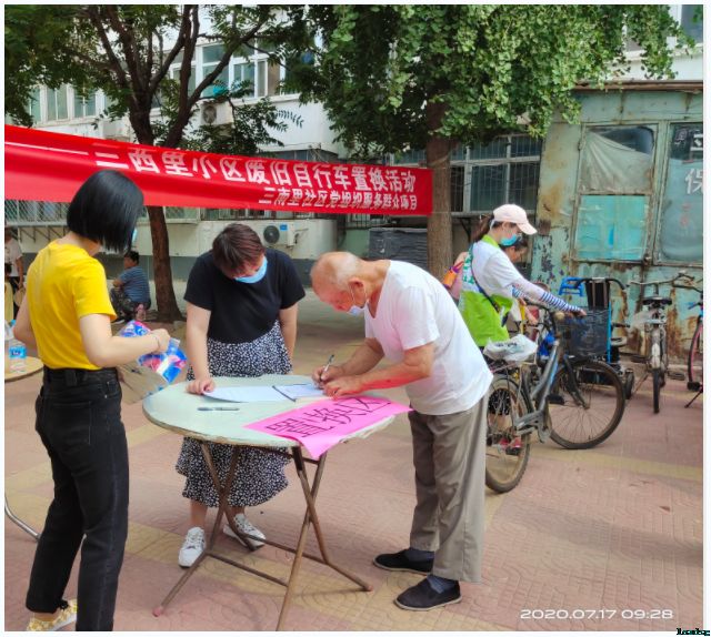 “僵尸自行车”一直是困扰社区的一大难题,不仅占用公共空间,还给小区居民的生活环境和出行带来诸多不便。为进一步解决这一社区难题,2020年7月17日上午9:00,三南里社区党委携手立德社工事务所在三西里小区健身园开展“以物置物,’换’然一新——三西里小区自行车置换活动”。