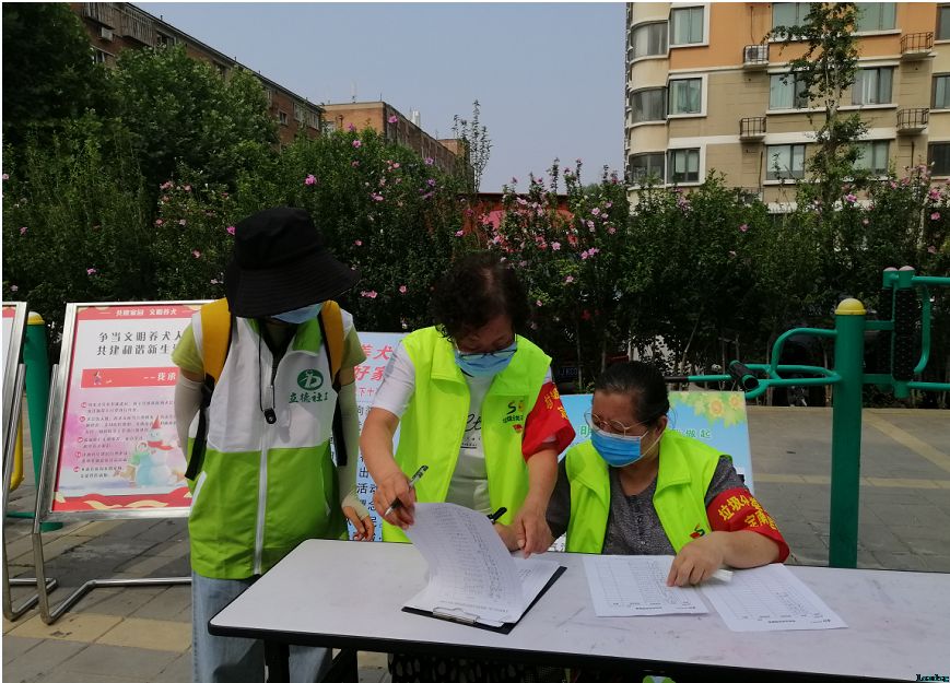 为贯彻落实垃圾分类政策,更好地推进垃圾分类工作,引导居民自觉开展生活垃圾分类,2020年7月16日上午,定南里社区“邻里守望志愿者服务队”队长尹英在定南里社区两委和三间房地区社区社会组织服务平台项目资金的支持下,联合北京奇中运动影视文化传播有限公司,在五建小区开展了“定南里社区家园共建——垃圾分类,我们一起来!”宣传活动。此次活动共招募44名志愿者,吸引了上百人参与互动。