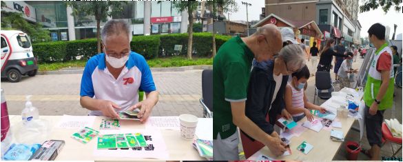 社工通过诚信金句拼拼乐、诚信书法、诚信树、诚信异性手卡签到四个简单易懂的环节将活动现场串联起来。本次活动采取“摆摊式”即随来随走的活动形式,每一个诚信互动环节都是独立的,居民一人就可完成;四个环节都参与过后即可兑换奖品。社工对活动时间进行了阶段限制,定在9:00—11:00,避免人员聚集。你看咱朝外居民参与社区活动就是积极,8:50左右陆陆续续都过来了。