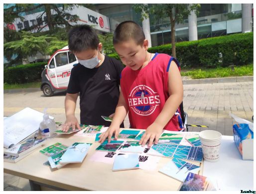 “阿姨,我最喜欢拼图啦!我要参加这个环节,我对地理非常感兴趣,这几个建筑物我一定能够拼对,背面的诚信诺言我一定记得住。”“好啊,这里有五组,你快拼拼看吧。”这是来自吉祥里社区的小朋友和社工的对话。