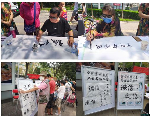 2、诚信书法:参与者书写”诚信“二字,或诚信相关的字句,书写完放置到展架上进行展示。书写过程中,参与者静心悟意,牢记诚信。
