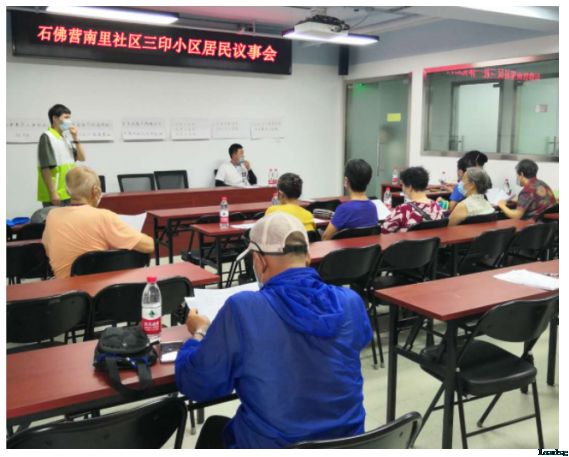 2020年7月30日下午,在石佛营南里社区党委的统筹与支持下,社区居委会联合居民议事成员11人、朝阳家园物业负责人1人、社区社工2人、北京市千禾立德社会工作发展中心社工2人,共同在石佛营南里社区活动室召开了“一事一议”方案制定协商议事会。