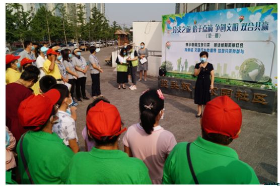 现场首先是双合家园社区书记给大家解读北京市垃圾分类相关政策,“5月1日起,北京市正式执行《北京市垃圾分类管理条例》,6月1日起《北京市文明行为促进条例》开始施行,在这里,呼吁双合家园社区全体居民共同实施垃圾分类、共同践行文明行为……”