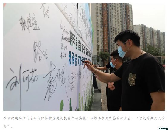 社区共建单位在活动现场也纷纷表态。北京第五中学朝阳双合分校书记说:“长期以来,北京第五中学朝阳双合分校积极发挥各自优势,文化联动、深化共建、助力社区发展,今后社区垃圾分类系列活动我们也将持续参与其中。”“我们园的孩子大多是本社区居民子女,我们将不间断的把垃圾分类知识教给孩子们,从多角度让孩子影响家长,助力社区垃圾分类。我们可共同策划一些更直观的让孩子们亲身接触的垃圾分类互动活动。” 朝花幼儿园东园园长刘晓兰说。北京市保障性住房建设投资中心焦化厂区域办事处在签名办上留下“垃圾分类人人有责”。