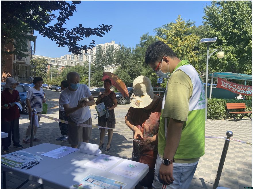 现如今,垃圾分类逐渐成为社区新时尚,开展垃圾分类投放、分类回收是实现生活垃圾减量化、资源化、无害化的重要途径。在双惠苑社区党委的宣传下,党员、志愿者们纷纷来到外展现场,响应社区工作人员与社工提出的21天垃圾分类打卡行动的倡议。