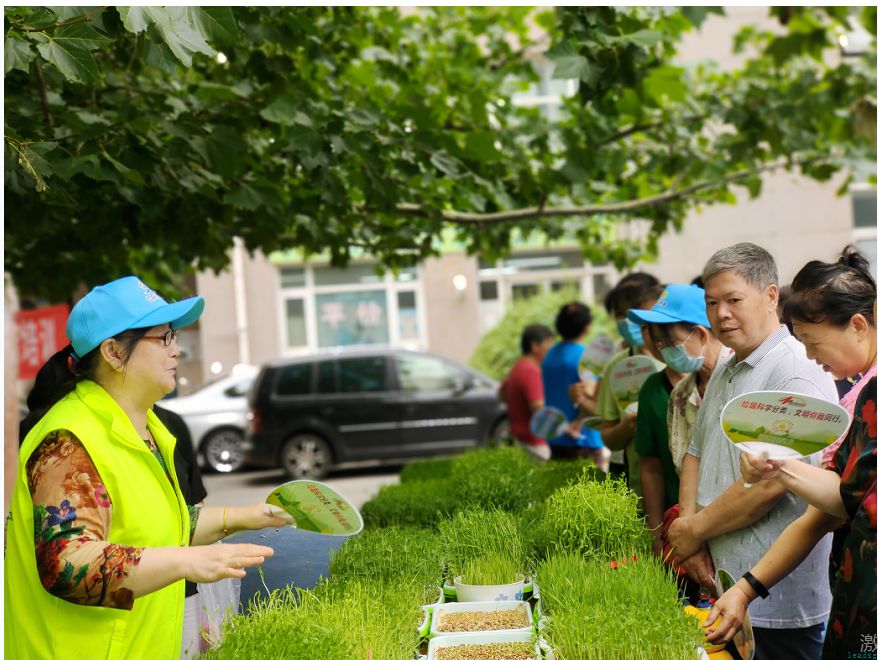 活动开始前,美然动力社区绿满家园芽苗社的叔叔阿姨们,就纷纷将自己的芽苗菜放到广场展示台,吸引了上百人前来观赏。宣传芽苗菜品牌的同时,也搭建起垃圾分类学习的平台。