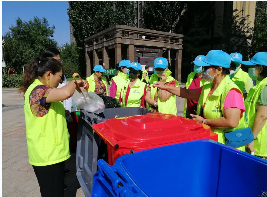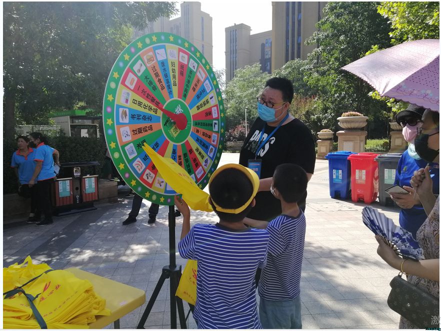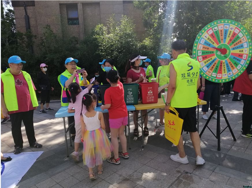 “哎,你听说了吗,前面小广场那,今儿有一垃圾分类活动。”