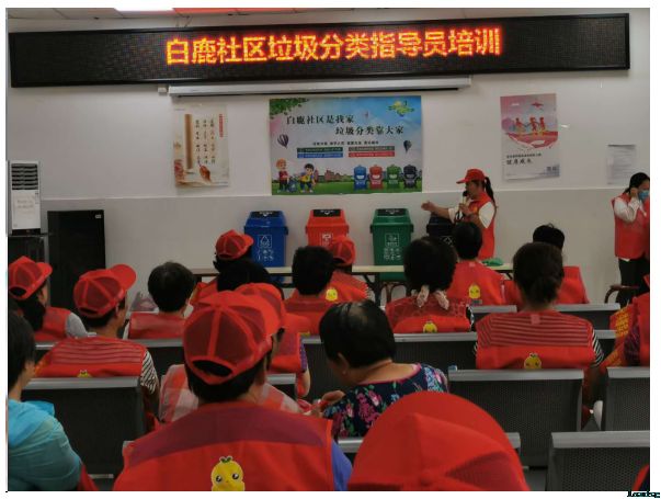 为了进一步提高垃圾分类指导员的专业指导水平,白鹿社区于2020年8月17日举办了“培训+外展宣传”活动,该活动主题为“垃圾分类一小步,健康生活一大步”。