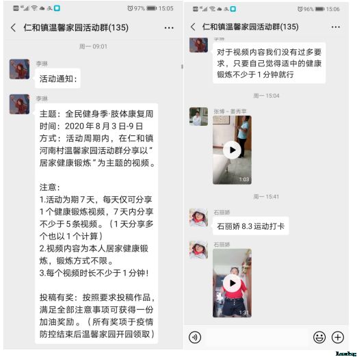 2020年8月8日是全国第12个“全民健身日”,今年的主题是“推动全民健身,助力全面小康”。仁和镇河南村温馨家园响应这一主题,自8月3日至9日推出了“全民健身季·肢体康复周”线上打卡活动,呼吁残疾人朋友居家参与体育锻炼,打卡分享康复视频。