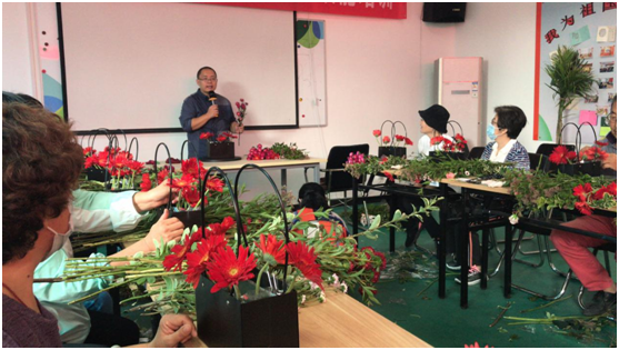 2020年9月21日,小红门示范温馨家园活动室外花香四溢,原来是小红门地区残联举办的“情暖秋日,花开四溢”残疾人职业技能之插花培训开课啦!本次活动共30余名残疾人参加。