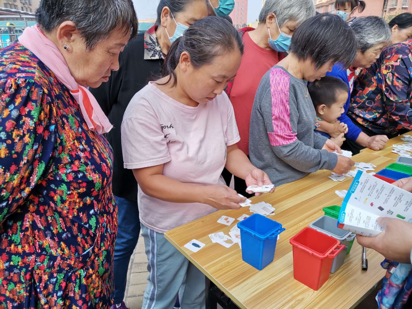 垃圾分类活动通过知识宣讲和分类游戏相结合的方式,在游戏娱乐中让居民学习垃圾分类知识,掌握垃圾分类技巧。