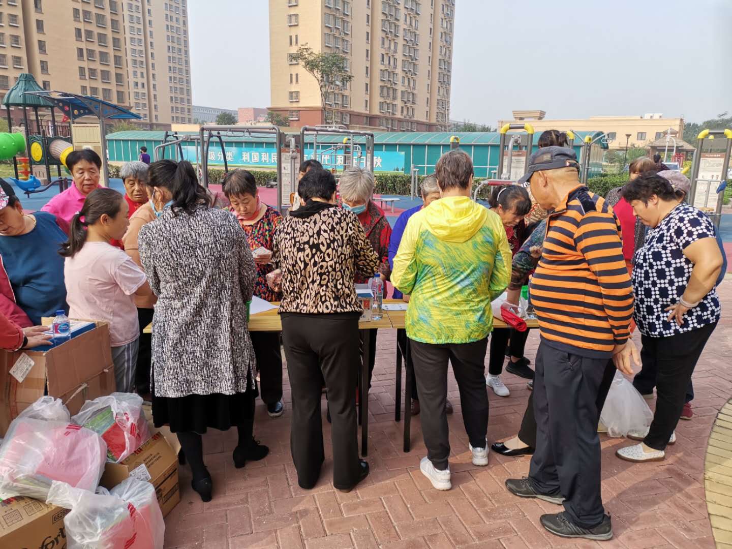 居民骨干王大爷和李大爷都已经将近70多岁了,这次在微信群中看到活动通知,第一时间相应,早早的就过来帮忙。