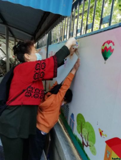 座谈会后,社区工作人员对居民进行了分组,家长带领小朋友将自己的作品放置到指定宣传板上。“宣传阵地”是社区发布工作动态和居民获取最新资讯的“信息窗口”,更是对居民群众进行宣传教育的平台,对营造社区文化氛围、丰富社区文化生活、宣传国家政策法规等方面起着重要作用。车棚的美化既拓宽了社区宣传阵地,也在社区环境整洁方面迈出了重要一步。