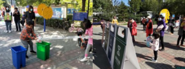 仪式结束后,小广场里铺上了一块一块的小毯子,社区招募的二十个家庭拿出自家的闲置物品给它们寻找新的“主人”;还有社区快乐老妈们拿出手工织物进行义卖,把得到的钱捐给贫困地区;口腔医院免费给大家来做义诊;垃圾分类趣味互动吸引了许多居民前来参与,垃圾分类投掷手、垃圾分类大富翁、垃圾分类夹夹乐三个游戏让孩子和家长一起互动,在快乐玩游戏的同时也学到了更多的垃圾分类知识。垃圾分类志愿者招募工作同时进行,共发动了8名居民加入到“一日女儿”的志愿者行列中来,壮大了社区公益服务力量。
