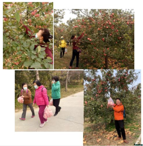 到达目的后,园内的工作人员为大家介绍了苹果的生长环境及种植的相关知识。工作人员讲道果园普遍使用的是农家肥,加上本地昼夜温差大等气候因素,产出的富士苹果色艳、汁多、味甜。在得到果园方允许后,大家兴高采烈的进入果园,迫不及待地去采摘自己心仪的果实。