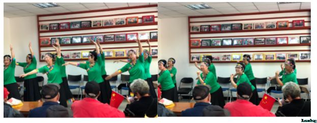 歌声刚落,舞蹈《面对鲜红的党旗》隆重登场,欢乐喜庆之余也展现了党支部七彩阳光舞蹈队的风采。党员们用舞蹈形式为老党员庆生,将现场气氛再一次推向高潮。