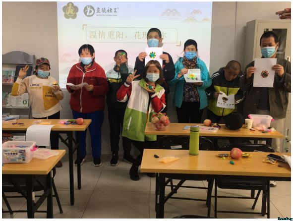 重阳节,又叫老人节,是中华民族的传统节日,是一个敬老爱老的日子,在这一天有外出赏菊花、喝菊花酒等习俗。为了丰富大家的文化生活,在天竺街道残联的支持下,2020年10月23日,立德社工组织天竺辖区的残疾朋友在天竺温馨家园开展“温情重阳,花现有你”主题活动。