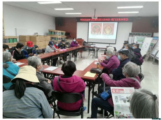 活动开始,社区工作者首先从楼院文化是什么进行了简单的说明,然后通过对北京其他已经开展楼门文化建设的优秀社区成果进行分享和介绍,使大家对楼门文化有一个新的整体认识。案例中涉及的三里屯武安家苑小区楼院负责人张桂英阿姨也到了现场,张桂英阿姨从楼院居民动员、楼门文化打造等维度展开了详尽的介绍,观看完优秀案例的楼门文化建设成果,居民们纷纷表示,希望自己的楼院也能变得如此温馨有爱。