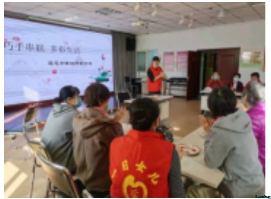 为了丰富老人的业余生活,锻炼其动手实践能力,进一步营造“一日女儿”志愿服务队暖心慰老的服务氛围,太阳宫社区开展了手工课系列慰老活动,本次活动共准备了钩针、串珠、编织三堂课程。