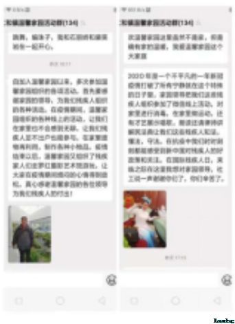 评选征集过程中,残疾朋友通过线上与线下分享的方式,将最想对温馨家园说的话与心中最温馨的瞬间一一展示。在分享的每一段文字中,残疾朋友仿佛和社工一起回顾曾经所开展的活动,言语间充满着真切的情感。每一张照片中,都定格有残疾朋友的活动瞬间,那一张张笑脸给予社工无限的欣慰。在评选投票阶段,社工每天在温馨家园活动群发送投票链接,在线下帮助不擅长电子设备的人进行每日投票,为残疾朋友讲解最常用的软件使用与投票方法。