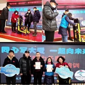 在北京冬奥、冬残奥来临之际,为更好地培养出助残志愿者,助力北京冬奥,和平街残联在朝阳区残联的支持下,开展了“同心写大爱·一起向未来”系列活动。和平街残联特邀三位专业老师分别就“爬楼梯机使用方法、盲人跟随技巧、轮椅助推”三项助残技能做相关培训。来自辖区的残疾人工作者、助残志愿者、社区居民、残疾人亲属及助残社工共计50名参加了此次培训活动。