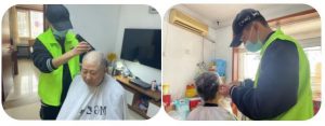 本次活动邀请到两位理发师,将要为19名预约人员进行理发。为了提高工作效率,两名社工各带领一位理发师分头行动。入户之后,在剪之前,理发师都要与服务对象认真沟通,待明确了大家的理想发型后再着手服务。