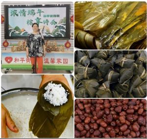 为了让辖区学员们能在端午佳节吃到香甜软糯的粽子,助残志愿者孙平厚老师在活动前期早早地就忙开了:煮粽叶、泡米枣、腌腊肉、包蛋黄……一个个披上绿色外衣的粽子,带着粽香被密封在袋中,承载着众人及街道残联的祝福和心意,将被送到辖区学员们的手里。