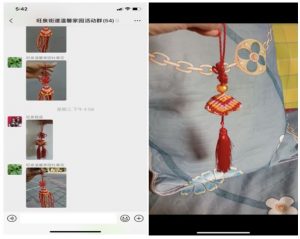 活动当天,温馨家园邀请到非遗传承人李老师,通过“云课堂”的方式教授大家制作端午香囊。老师在镜头前一边编制一边讲解香囊的制作方法,带领大家一起学起来,还时不时的为大家答疑解惑。学员们认真地盯着屏幕,一步步跟着老师的节奏,彩绳在手中上下飞舞,犹如翩翩起舞的蝴蝶。不多时,一个个精巧玲珑的香囊就被晒到了群里,有着异曲同工之妙,引得赞叹声一片。