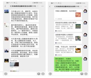 待社工分享之后,学员朋友们将自己深刻的感悟与真诚的祝福发送到群里,感谢中国军人舍小家为大家、保家卫国抗震救灾的无私奉献精神,并祝愿祖国更加繁荣昌盛!