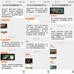 观影结束后,学员们纷纷感慨“保护文物是每个公民的义务,团结就是力量,加油!”“这部电影很真实,教育我们要爱护国家的宝贵文物,一个文物代表一段历史……我们要团结一心,不让侵略者侵犯我们的国家,不再让历史重演!”