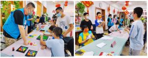 本次活动继续邀请了YZJ桌游图书馆志愿服务队,现场提供10余款桌游游戏,以给大家带来别出心裁的欢乐体验。这一项目引得众多小朋友纷纷加入其中,不厌其烦地参与挑战。孩子们丰富新鲜的参与感,给这个区域增添了诸多惊喜和笑声。